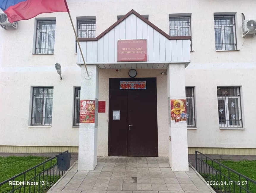![]() Фасад главного здания Петровского районного суда Тамбовской области украшен ко Дню Победы над фашизмом в Великой Отечественной войне 1941-1945 гг.